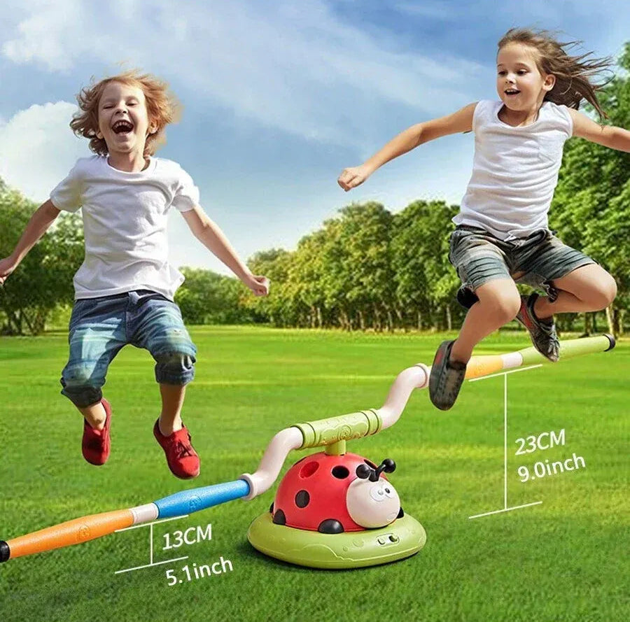 The music starts playing, the poles start spinning, and little hoppers start hopping! You can also play without music.